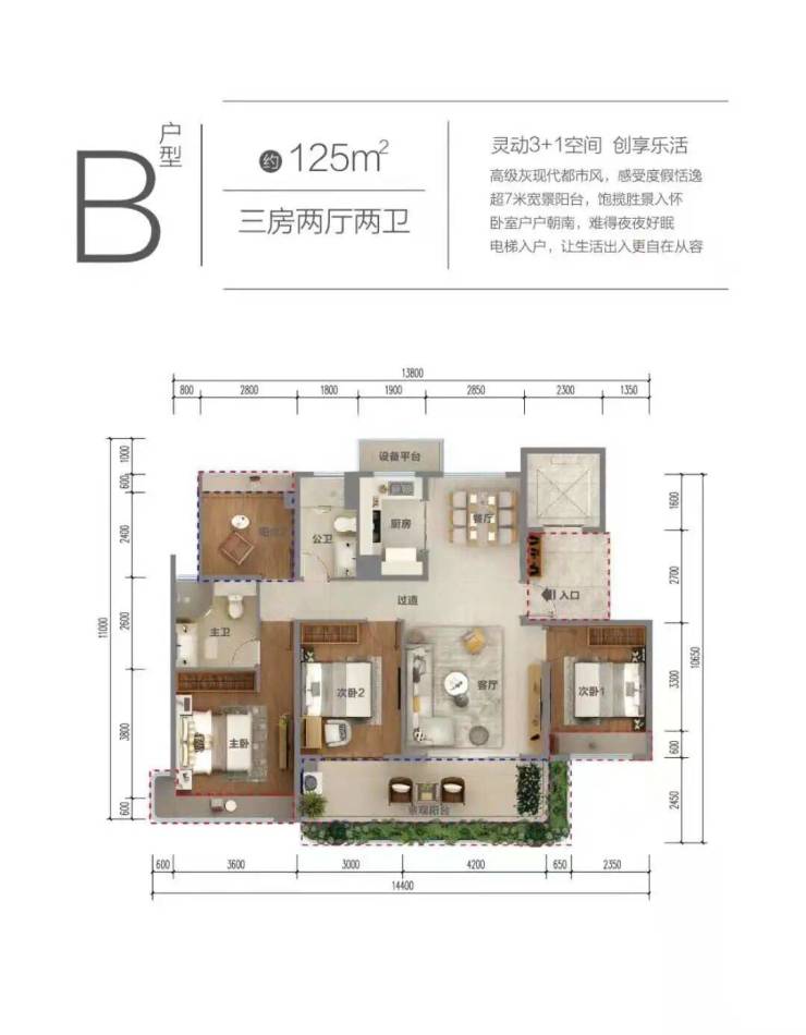 ⛪主力户型:建面约108m² 三房两厅两卫125m² 3+1房两厅两卫142㎡ 四房两厅两卫