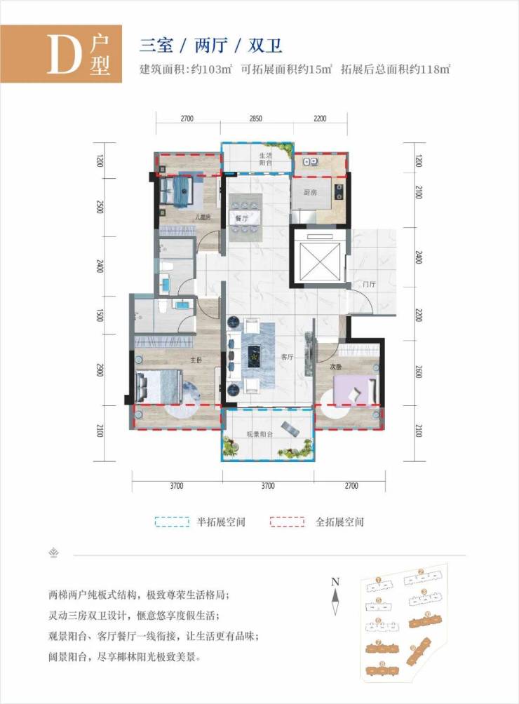 户型设计为全明格局,采光足、南北通透,电梯入户,居住舒适度高。