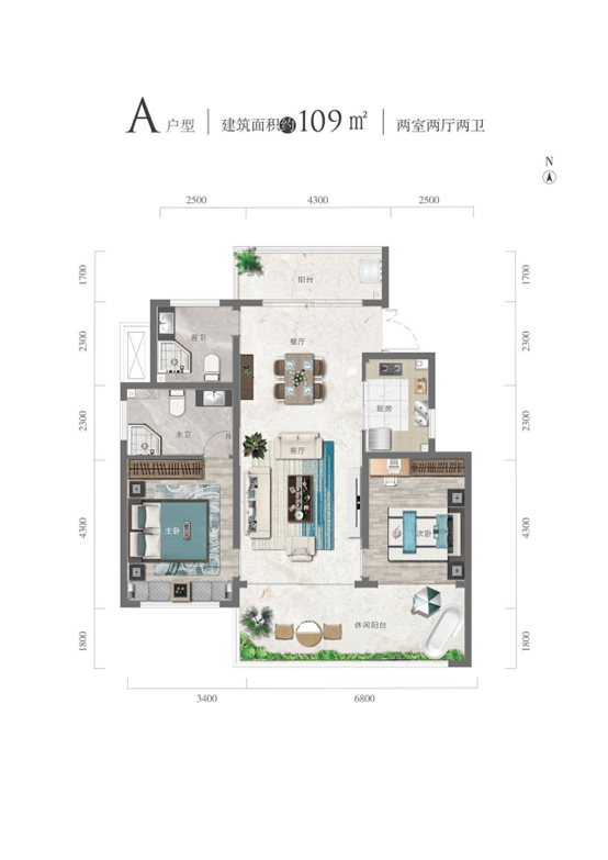 海棠壹号院全新迭代建筑面积约109-119㎡升级户型,空间布局科学合理,全明户型,南北双阳台,270°环幕视野,重新定义高端品质人居尺度。