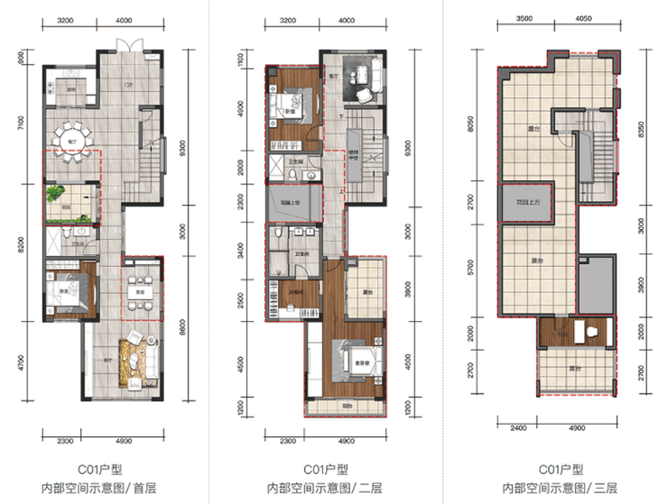 C01型:联排/双拼边套,126.78/129.2㎡