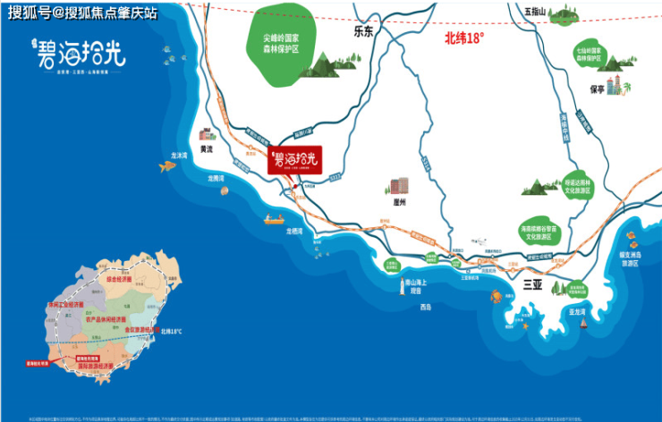 九所新区坐落在大三亚旅游经济圈的乐东县内,当地海岸线从乐东与三亚交界处,往西至望楼港,连绵蜿蜒约16公里,远方的青山和这片碧海合围内的区域,被称为国际旅游岛的“中华养生区”。