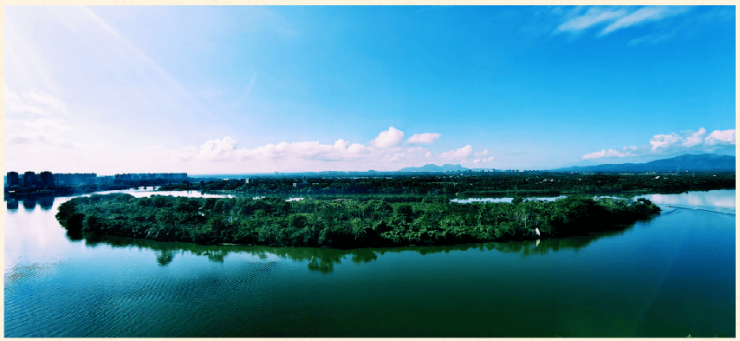 从半岛花园极目远眺,群山环抱,绵延起伏,近观两河相伴,护佑东、南、北三侧,有风生水起,独占鳌头之意境,是物华天宝,风水万全之地。