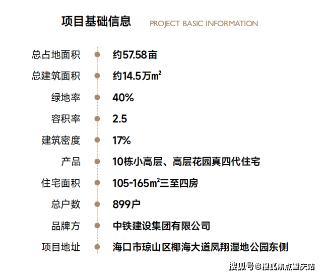 占地约 57.58 亩,总建面约 14.5 万㎡;容积率 2.5,绿地率 40%,建筑密度仅 17%,规划 10 栋小高层 / 高层纯住宅,总户数 899 户