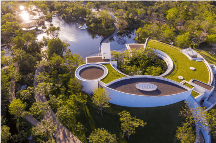 🌊度假生活:绿荫泳池、皮划艇航道、水音亭