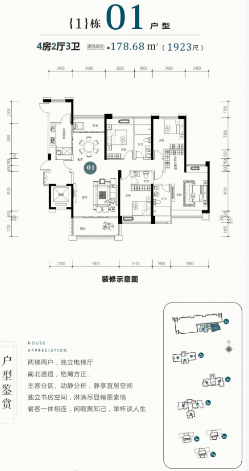 🏠建面:约160-178㎡四房两厅三卫🏠