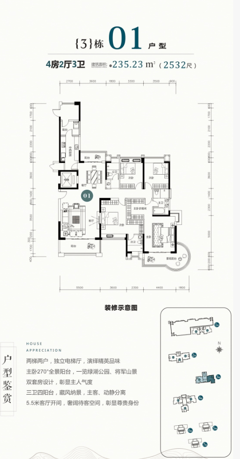 🏠建面:约185-235㎡四房两厅三卫🏠