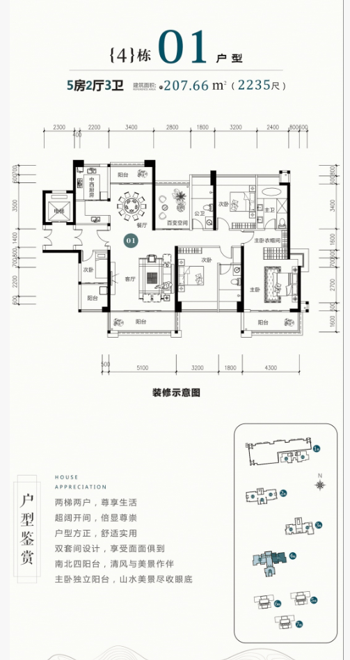 🏠建面:约179-207㎡四房两厅三卫🏠