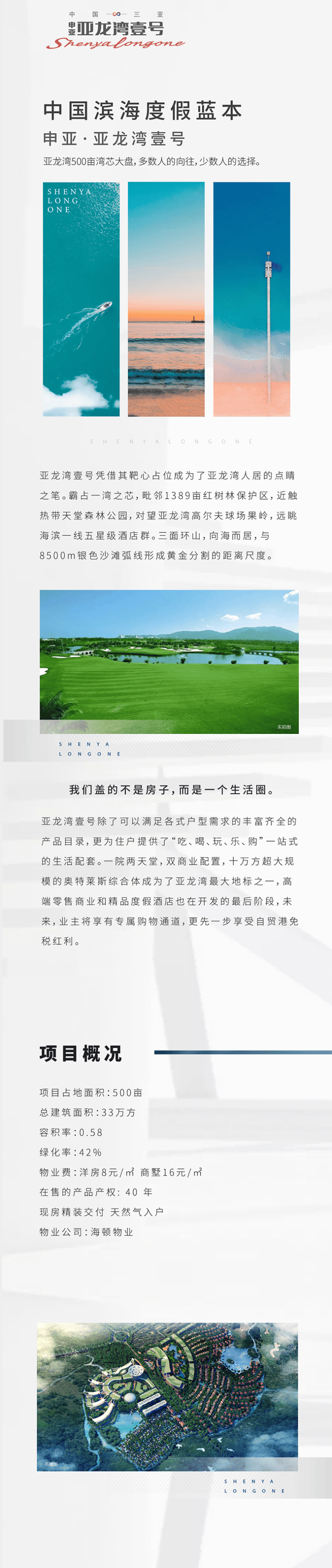 圈层优势明显:作为亚龙湾绝版地块项目,定位高端,能够帷幄塔尖圈层,坐拥亿级社交。