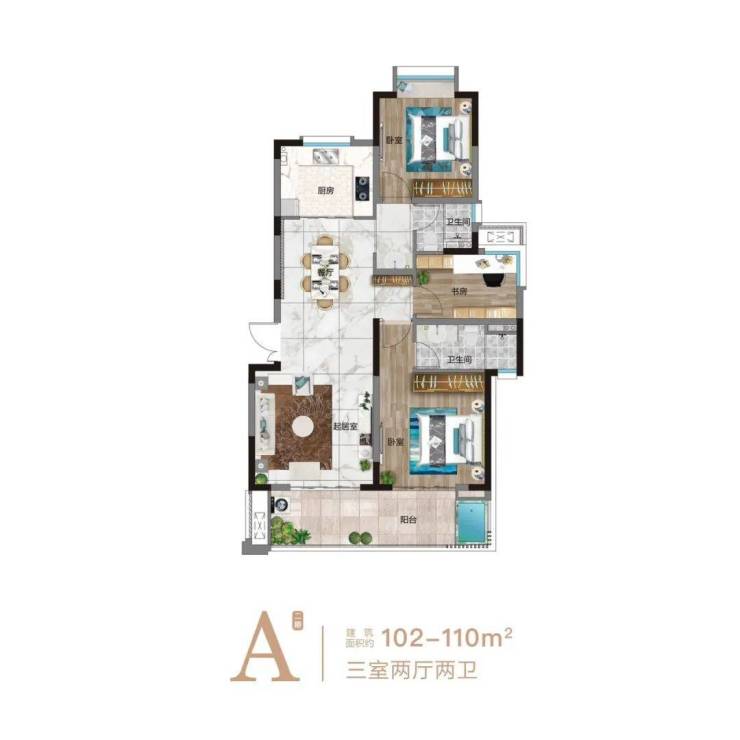 A户型亮点:精致户型,通透明亮,宽景阳台规划温泉泡池