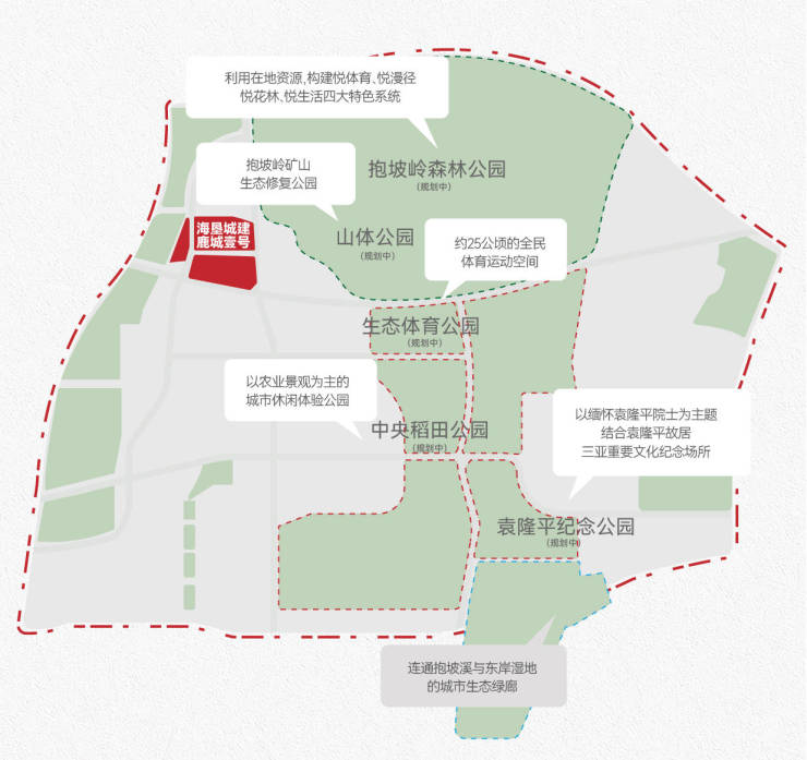 抱坡新城是三亚以“国际化、生态化、宜居化”为方向打造的新要地,定位为集自贸创新、城市服务、政务服务和生态宜居于一体的城市综合组团,规划范围为944.34公顷,是三亚“成片开发、功能复合”的重点板块。