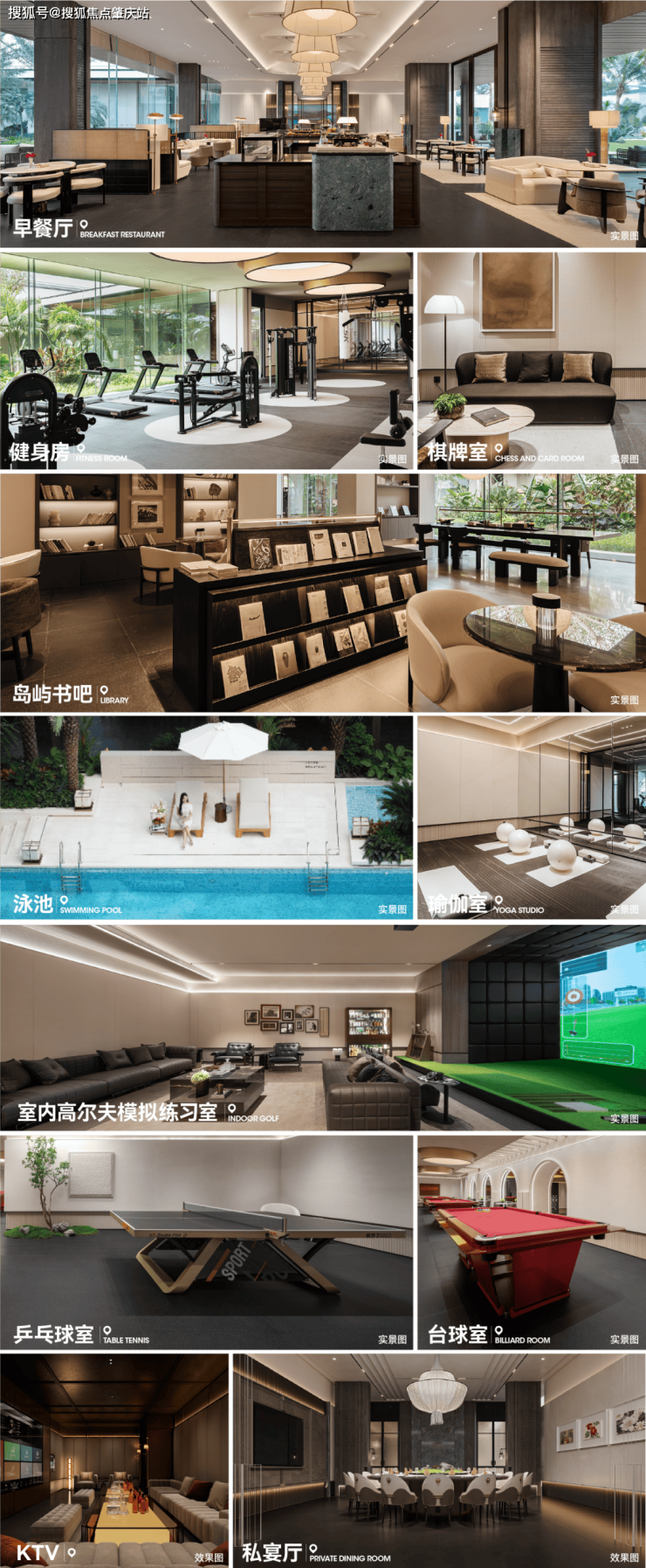 深度剖析高端酒店基因,创造功能与美感共融的9大社交空间,涵盖早餐厅、岛屿书吧、棋牌室、瑜伽房、健身房、近千平米度假式双泳池、KTV、私宴厅,配备约400㎡球类运动区,涵盖绅士运动桌球、国球乒乓球、全球社交通用语言——高尔夫模拟练习室等多元功能区,为旅居改善客群提供奢适服务。