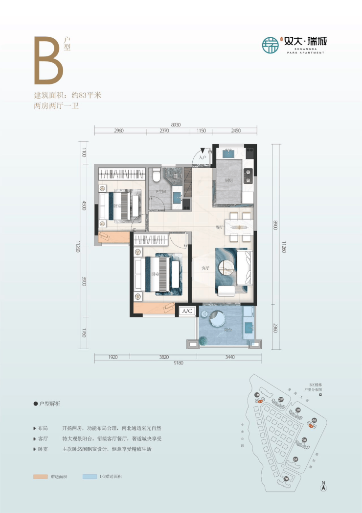 🌳【加售面积】B区83㎡两房、103㎡三房