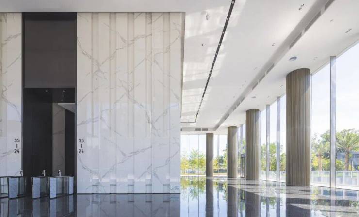 NO.1211.7米挑空大堂|360°通透全景大堂整体约2166㎡,360°通透全景,德黑兰花岗岩地面,石膏板造型吊顶,12mm厚岩板,赋予大堂商务质感和磅礴奢阔气势