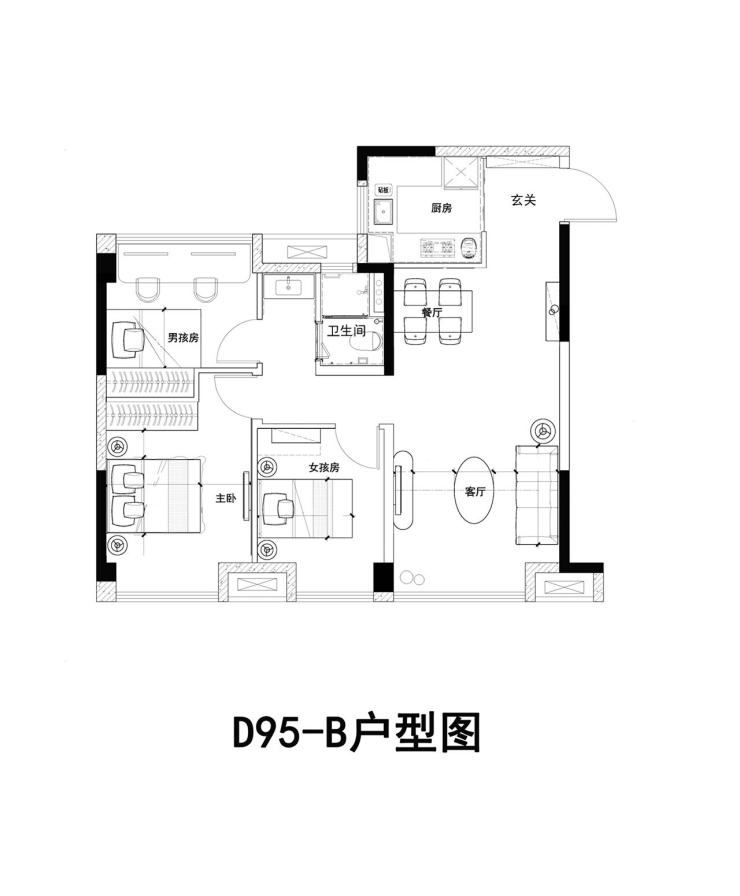 ②三房 D95A 面积约99㎡、阳台面积约11㎡;