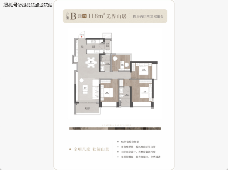 「产品类型」:建面约98㎡、约118㎡、约138㎡、约165㎡ 瞰山揽海高层