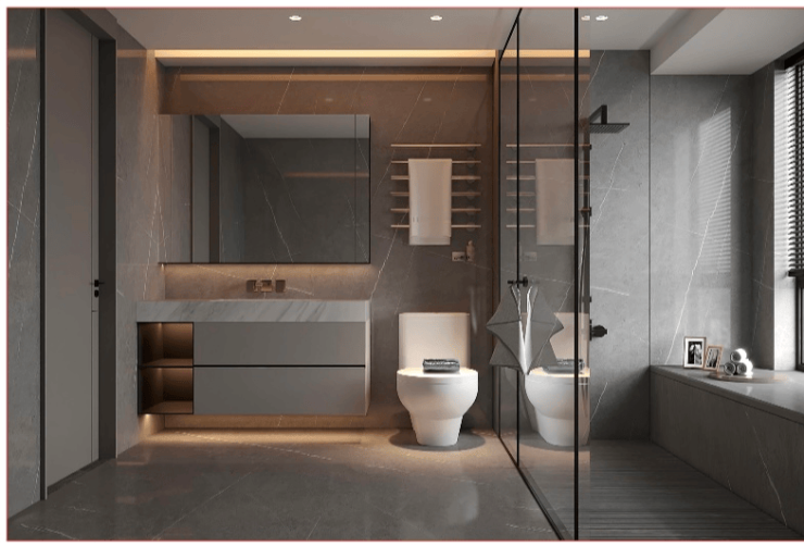 以简洁现代的线条手法诠释人居合一的理念。整体关系简约大方,强调整体关系和横线条为主。