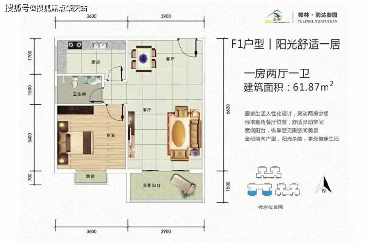 在售户型:61 平一房(朝南)、85-89 平两房(南北)、111 平三房(朝北)。