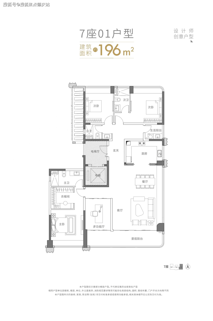 7座01户型 建面约196㎡丨270°L型巨幕视野,单边位无遮挡,奢享百米楼距