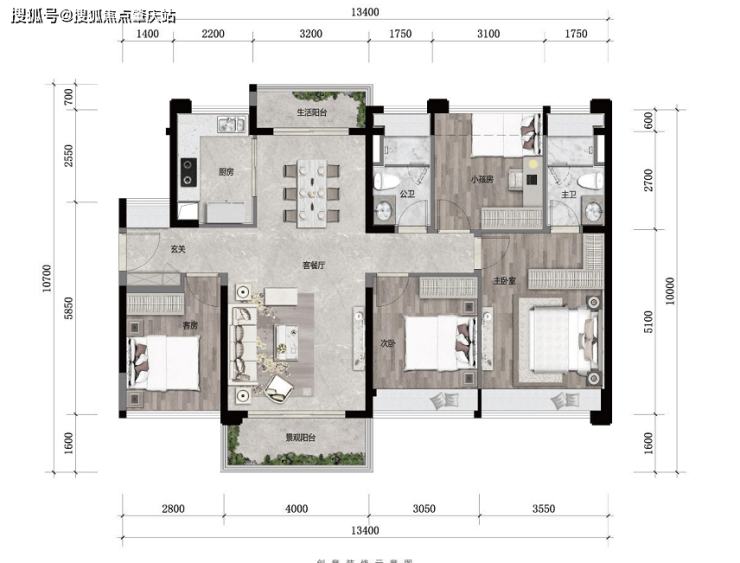 【123㎡四房两厅两卫】明星四房产品,超4米开间景观阳台,约3.2米开间生活阳台,南北对流,通风采光优渥