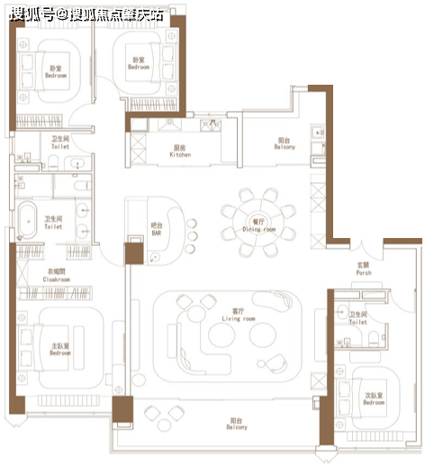 266方四房两厅三卫,8米江景阳台,超80㎡奢阔客厅,打造LDKB餐厨客一体化设计!