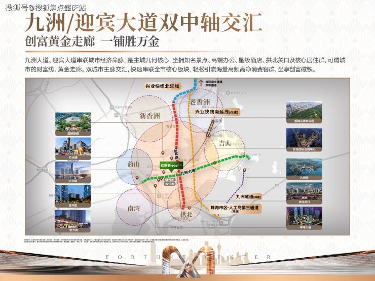 3口岸,咫尺即达拱北/青茂/港珠澳3大口岸,10分钟澳门;粤港澳大湾区超级交通枢纽。1大桥,3km接驳港澳珠澳大桥,通过港珠澳大桥40分钟直达香港。