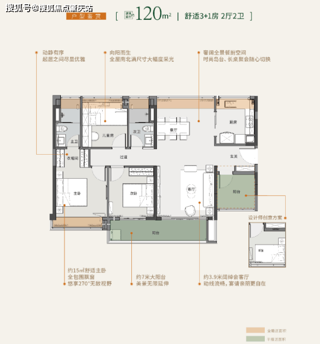 三重递进式全龄段园林——中央会客厅、邻里花园、健身区、阳光草坪、颐养花园,童趣乐园,游泳池。全季、全时、全龄、全景的阳光园林。