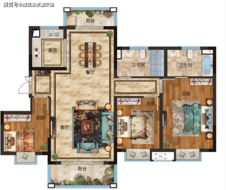 💎户型:建面约95-128㎡三房