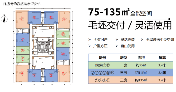 【翔海国际金融中心】:40层、3.4米层高、6梯14户,户型75-115-135㎡