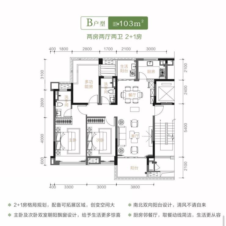 建面约103~143㎡ 三房至四房全板房设计,力求善美,大面宽短进深,全明采光布局,南北通透,方正户型,人性化设计,飘窗,阳台可拓展,尽显奢享品质空间,让创意和空间无限♾延伸,多一室少一室。