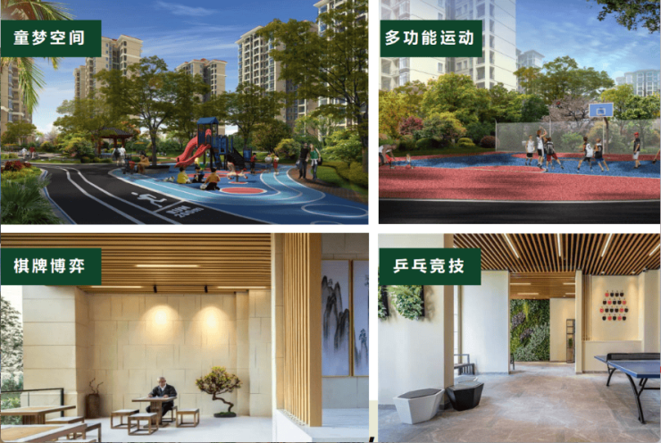 •邻里社交,户外运动:社区商业、多功能运动场地、康体健身、休闲步道、游泳池、幼儿园等配套一应俱全;