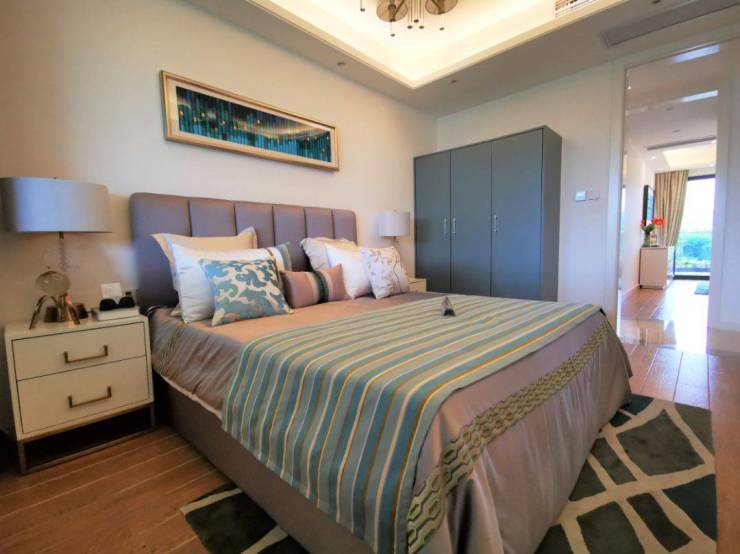 内部配套:项目耗资千万打造海南首个水幕电影喷泉,将成为海南网红打卡新地标。此外还规划有 500 平专属泳池、东南亚风情园林景观、新能源汽车充电桩,项目自建星级酒店,业务涵盖商务会议、健身场所、行政酒廊、中庭泳池、商务餐厅等。
