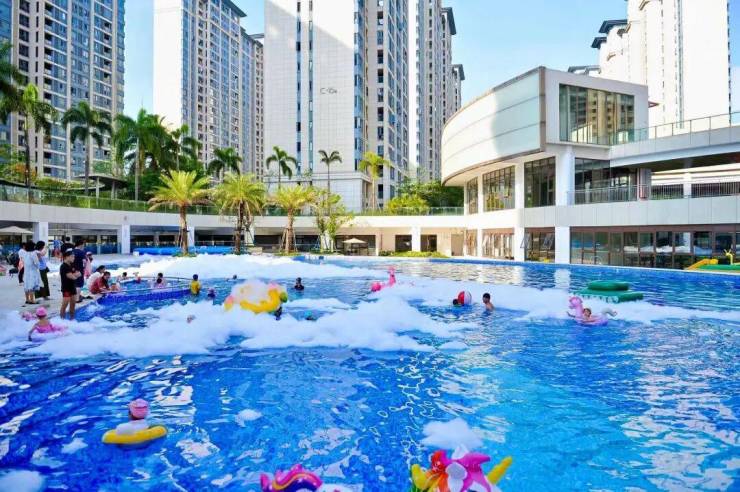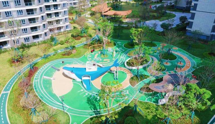 🌴“海境·森林”国际健康运动社区内外“双公园” 40%绿地率 把家搬进风景里外拥千亩乐园盛景,内揽14万方热带风情园林:约870m乐跑环道、约3700㎡中央景观会客厅、约950㎡“海洋奇遇”儿童主题乐园、青年活力健身空间、矿石印迹花园、康养花园、林荫休憩空间等四大全龄空间,以公园化自然体验,在风景中愉悦身心。