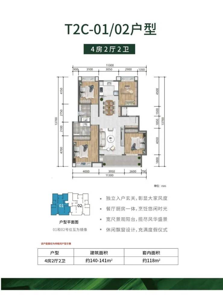 -全明户型,方正实用、公摊低,大主卧、超大景观阳台设计