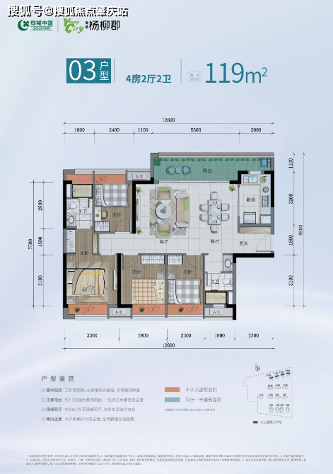 在售产品:建面约101-119㎡三四房