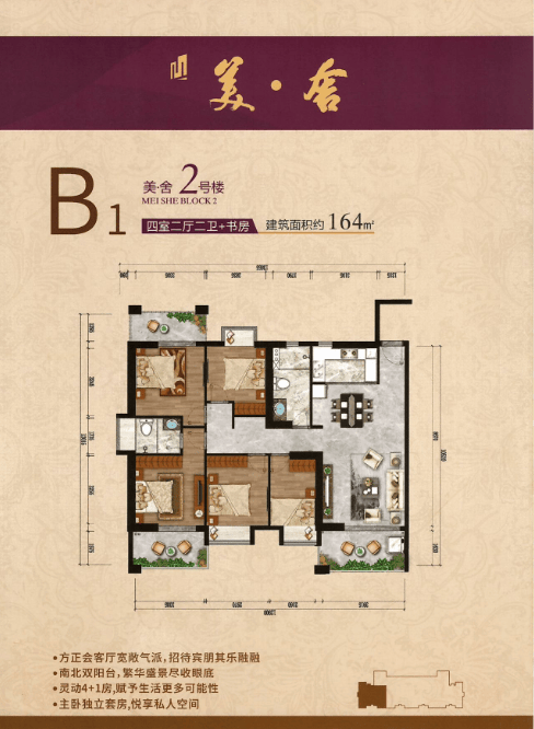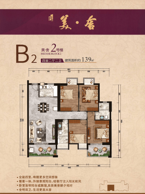 B2户型 四室二厅二卫+二阳台