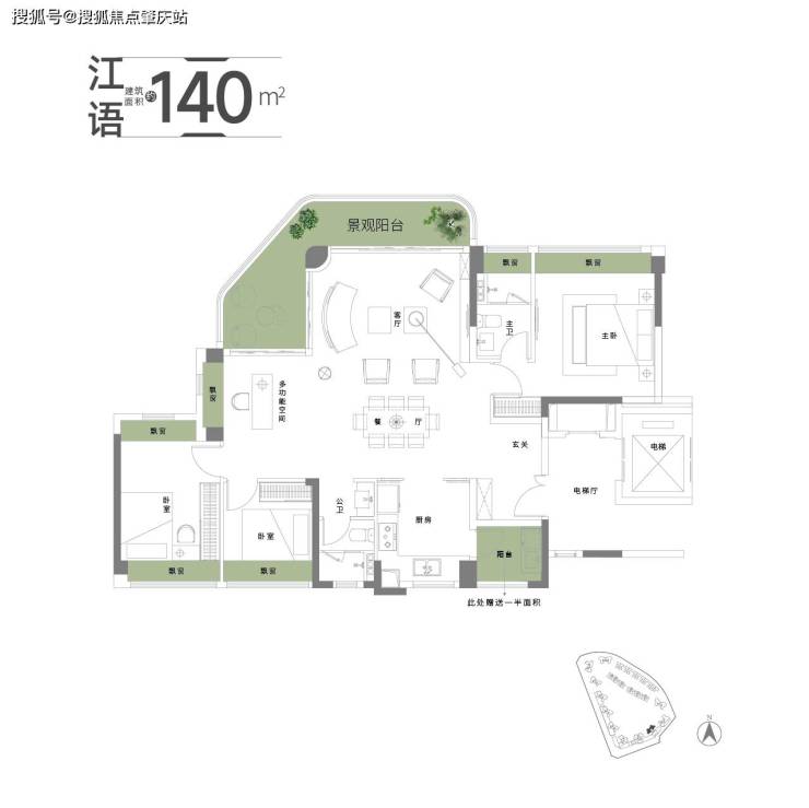 270°滨江景观视野 约74m²LDKB-X超大转角方厅
