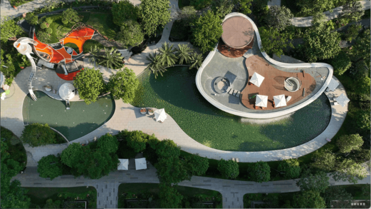 约3万方园林融合雨林、椰林、梯田等琼台在地元素,设计海南首座双层叠水瀑布泳池,透过128种热带植物打造家楼下的热带植物博物馆,呈现亲子、长者、社交等多元互动的生活场景。