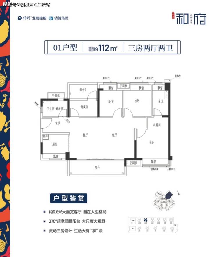 央企保利&国企清能匠工打造建面约80-112方的国潮居所。新中式轻奢风格,围合式布局,户户有景。南向主力户型,奢阔楼距,园林美景尽收眼中。