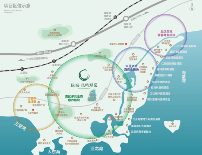 距海棠湾海岸线约4.5KM · 亚龙湾动车站约14.6KM·三亚市主城区约21KM · 三亚凤凰机场约36KM