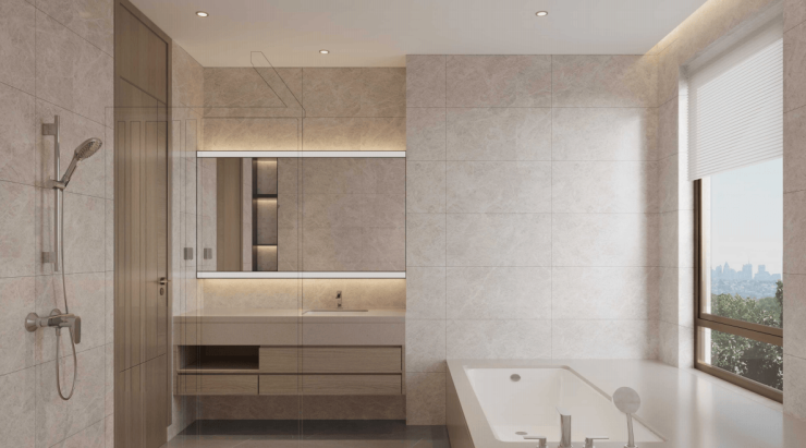 秉持中海·神州半岛最高产品品质,全屋配置中央空调,卧室配置浴缸、智能马桶或马桶盖,玄关、厨卫、浴室等功能区高效收纳设计,以适老化空间和精细化设计,定制精奢装修风格,极致细节主义,定义高定海居美学。