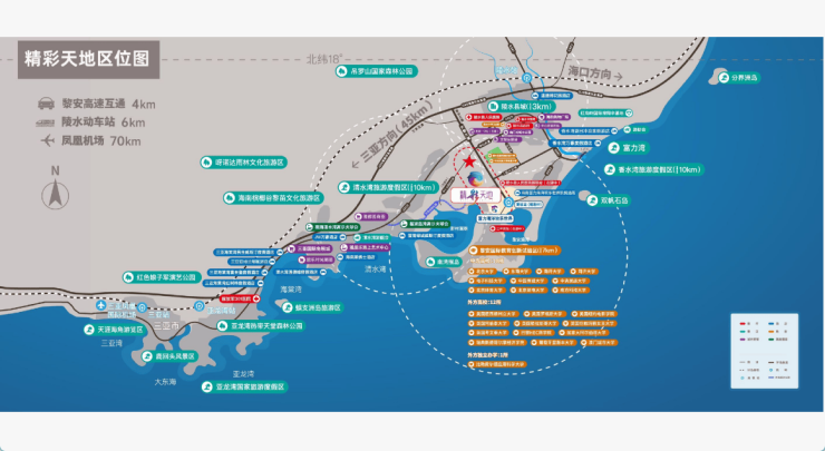 项目连接老城区及中央生活区,位于文黎大道与中心大道交汇处,距黎安互通G98环岛高速约6公里,距陵水站约8公里,距离环岛旅游公路约6公里,驾车轻松环游全岛。乘高铁4站即达三亚凤凰机场(约77km)、6站即达海口美兰机场(约205km),全国主要城市航班直飞。