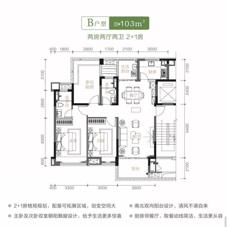 建面约103~143㎡ 三房至四房全板房设计,力求善美,大面宽短进深,全明采光布局,南北通透,方正户型,人性化设计,飘窗,阳台可拓展,尽显奢享品质空间,让创意和空间无限♾延伸,多一室少一室。