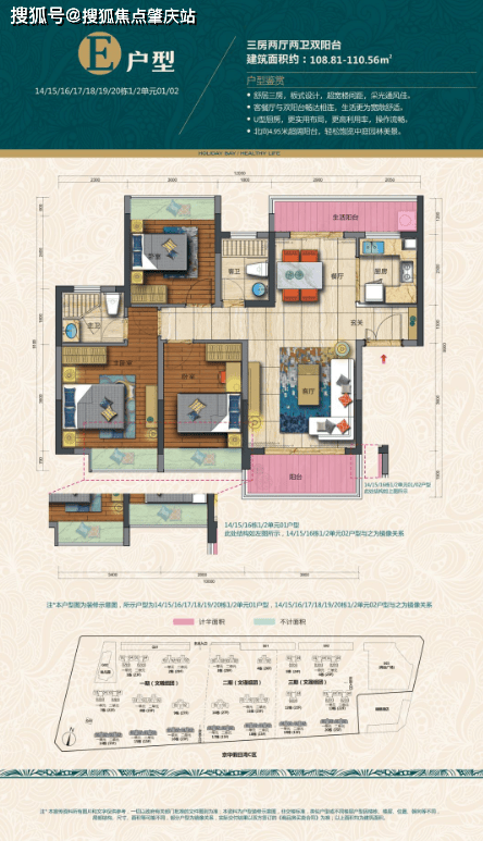 🏡108-110㎡ 三房两厅两卫【14至20栋】