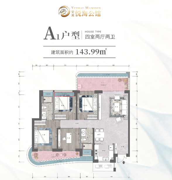 A1户型 建面约143.99㎡ 四房两厅两卫
