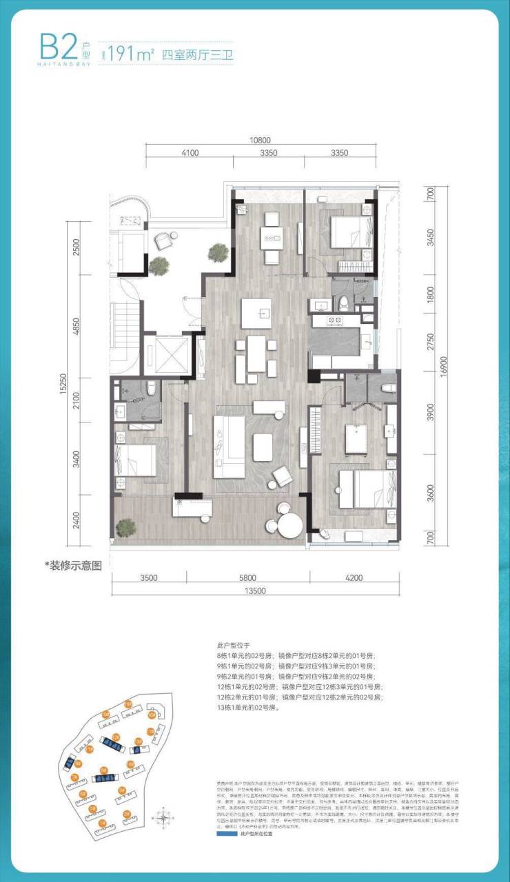 面积:建面约143-343㎡高端悦系奢邸3-4房
