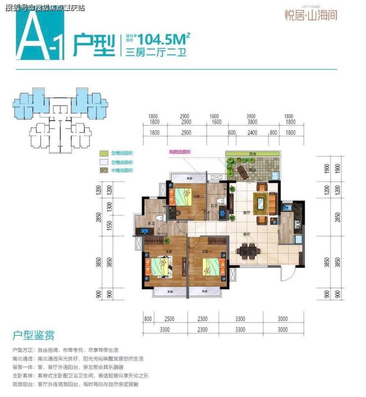 在售户型格局:三房两厅两卫,两房两厅一卫.