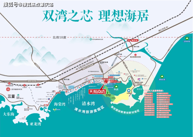 区域位置优越:位于海南清水湾 4A 旅游度假区与国际旅游岛先行试验区中轴之心,紧靠自贸港 11 大重点产业园区的陵水黎安国际教育创新示范区,汇聚旅游业、高等教育产业等发展优势,未来发展潜力巨大。