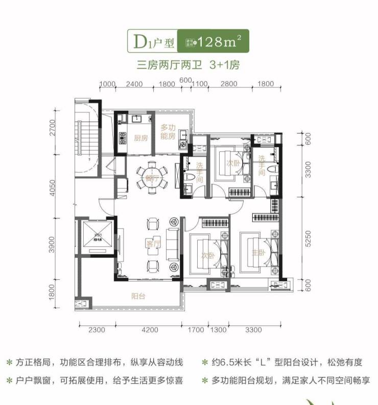【户型区间】建面约103、107、108、128、143㎡三房