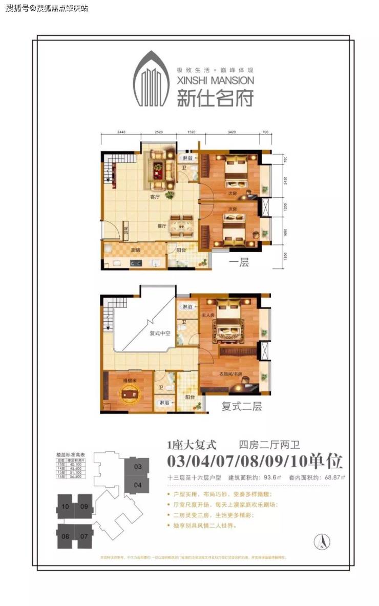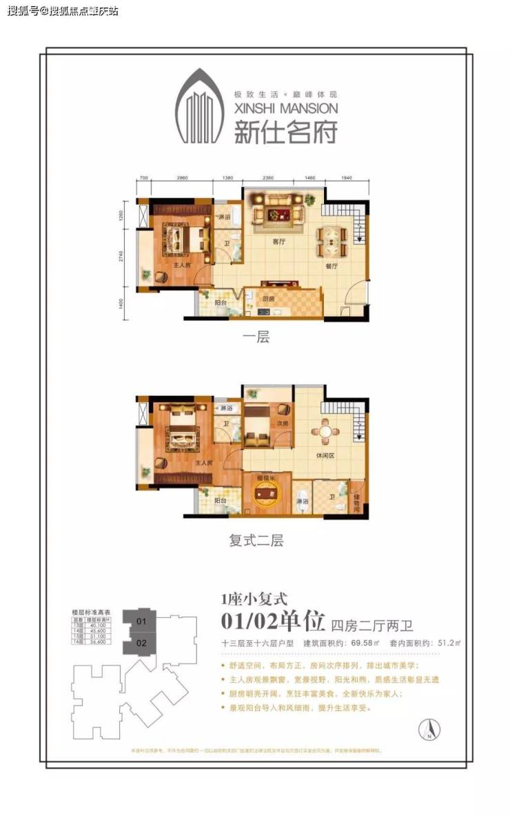 1座2-12层为3.1米高的平层公寓,13-16层为5.5米高的复式公寓(买一层送一层),公寓均可明火煮食,采用民用水电计价,宜居宜商。