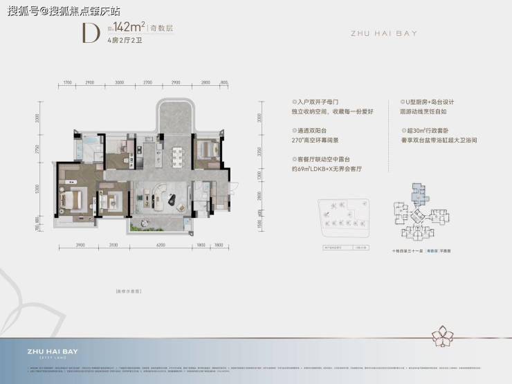 ▪产品|约88-142㎡高层阔景;约240㎡270度环幕山海景观、9米挑高空中墅院